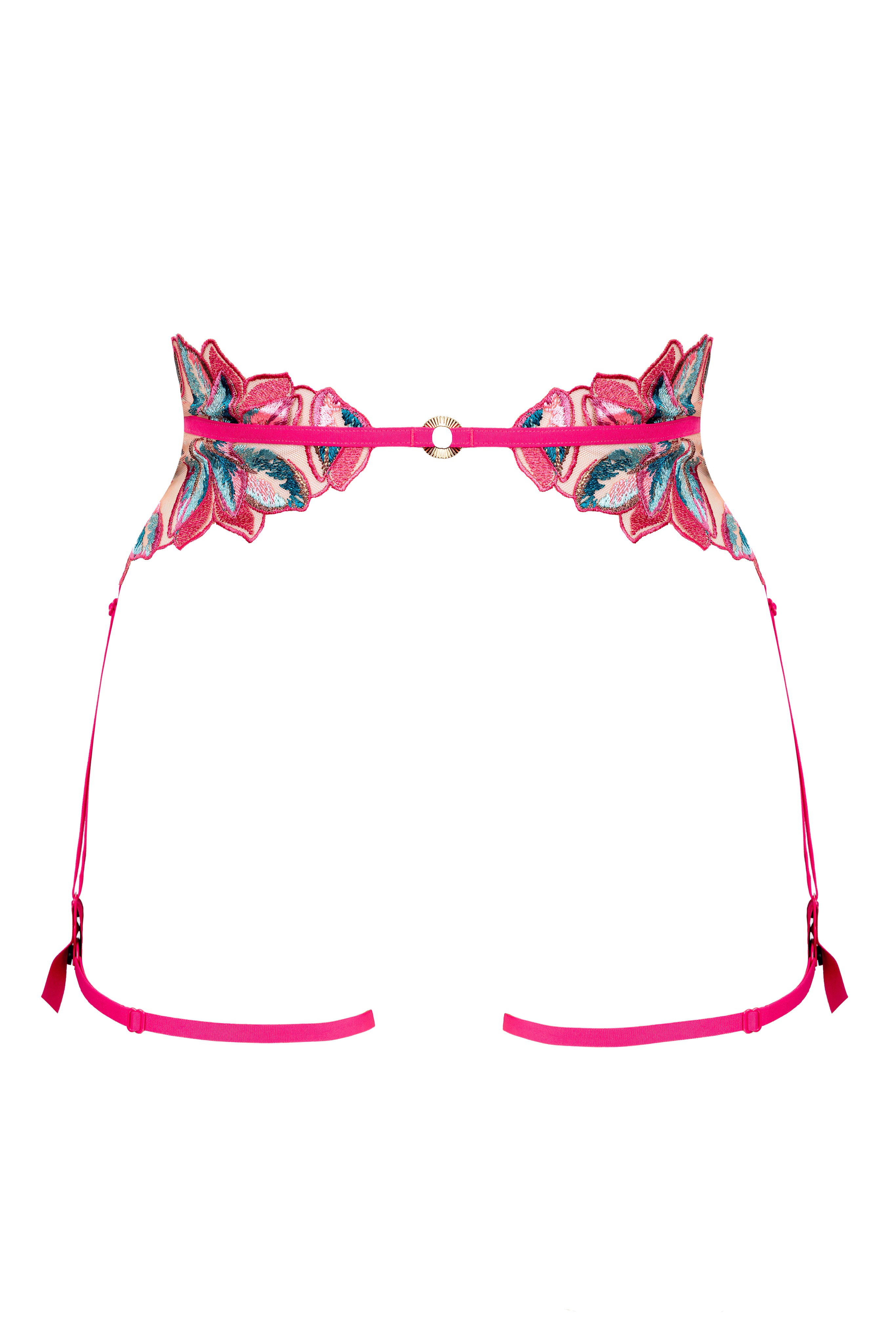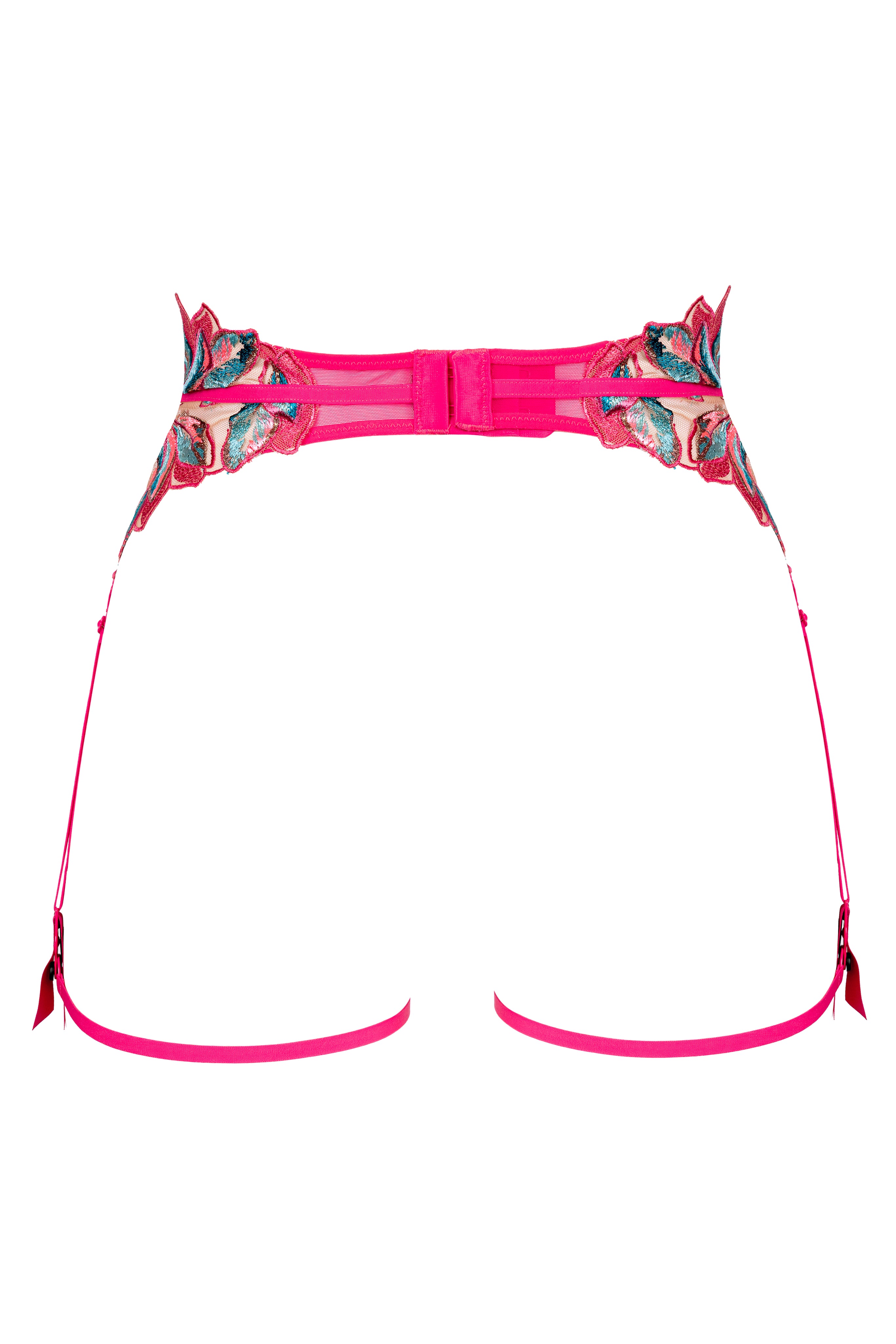 De Oiseau de Paradis jarretelgordel – Cherry verleidt met doorschijnende kersenrode tule, subtiel geborduurd met exotische bloemmotieven. Deze jarretelgordel is ontworpen met verstelbare bandjes en verfijnde details en omarmt de taille met gedurfde transparantie en Parijse elegantie. Luxueuze stoffen en voortreffelijk vakmanschap maken het tot een opvallend statementstuk binnen de Oiseau de Paradis-collectie, perfect voor verleidelijke avonden.