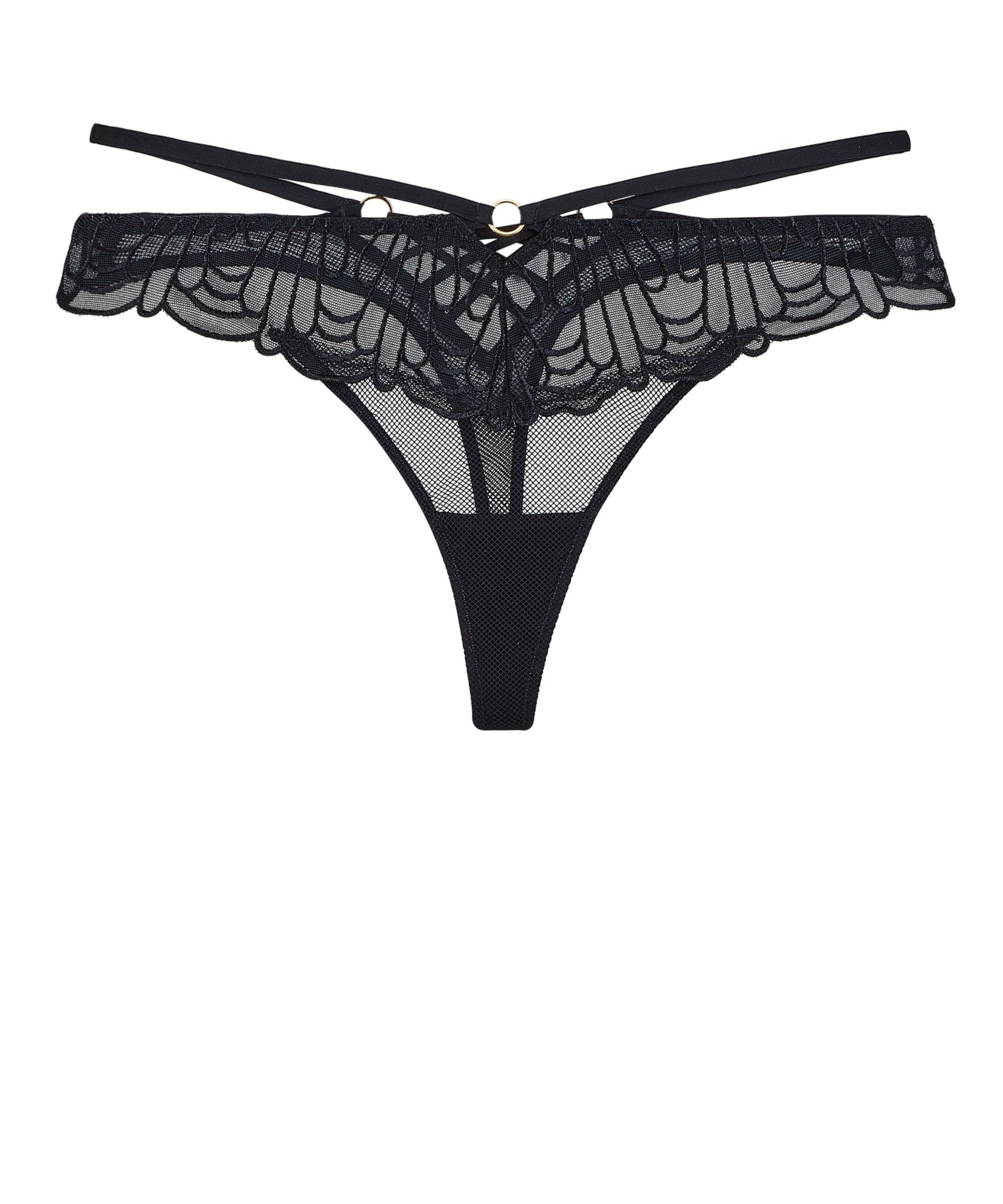Laat je verleidelijke kant de vrije loop met de Aubade Tanga. De string is gemaakt van fijn gaas en Zwitsers geborduurde tule en heeft bondage-accenten en een gouden strik voor een luxueus tintje. De elastische Comfort-band biedt de hele dag comfort, terwijl de gekruiste linten een gedurfde, speelse esthetiek uitstralen.