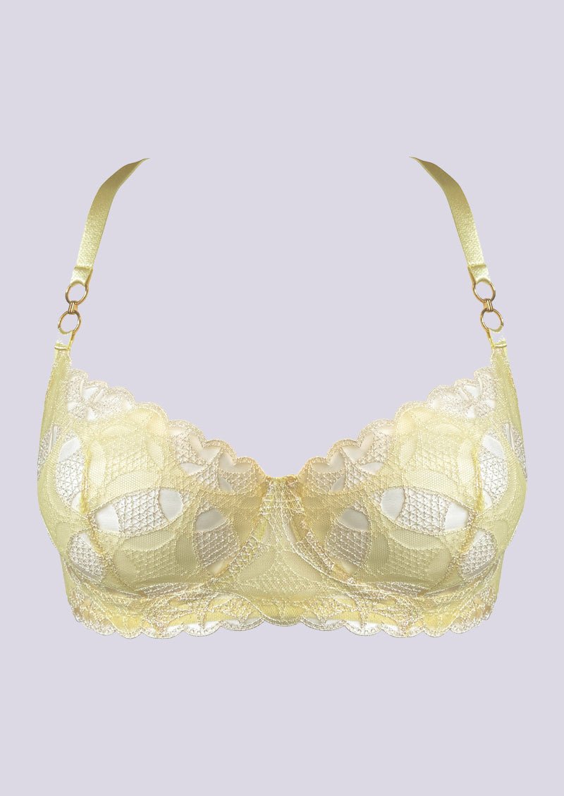 Deze balconette beha is de ultieme zomermust-have, vervaardigd uit de mooiste stoffen voor een sprankelende aantrekkingskracht die de aandacht trekt. Het beschikt over beugelondersteuning en zachte cups voor comfort en lift. Het verbluffende ontwerp van de achterkant maakt deze beha uniek en zorgt ervoor dat het een blijvende indruk achterlaat. Perfect om te combineren met elke lemonkleurige lingerie, verbetert het je ensemble met elegantie. Verhoog je lingerieverzameling met dit opvallende stuk. Geniet van de perfecte mix van stijl en comfort in je warme garderobe. Omarm je zelfvertrouwen en schitter in dit unieke ontwerp. Ervaar de schoonheid van luxe lingerie.