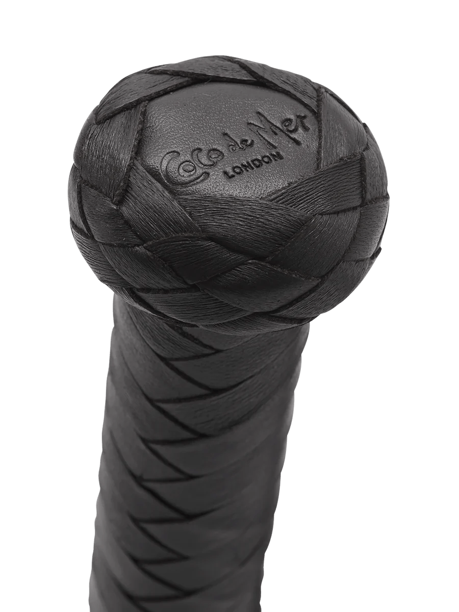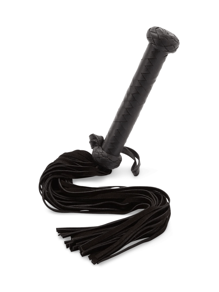 Dompel je onder in erotische verkenning met onze luxe leren flogger. Gemaakt van fijn leer en hoogwaardig suède, verrijkt deze zweep je S&M-avonturen. Tease met zachte suède franjes of zwaai voor intense sensaties. De stijve handgreep met polslus zorgt voor precieze controle. De diepe zwarte kleur en gevlochten handvat voegen schoonheid en aantrekkingskracht toe. Inclusief een merkbewaarzak en onderhoudsinstructies. Coco de Mer's collectie biedt visuele en tastbare geneugten voor ongeremde erotiek.