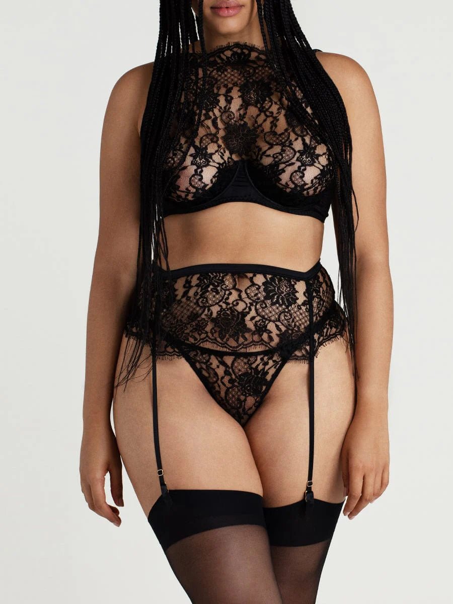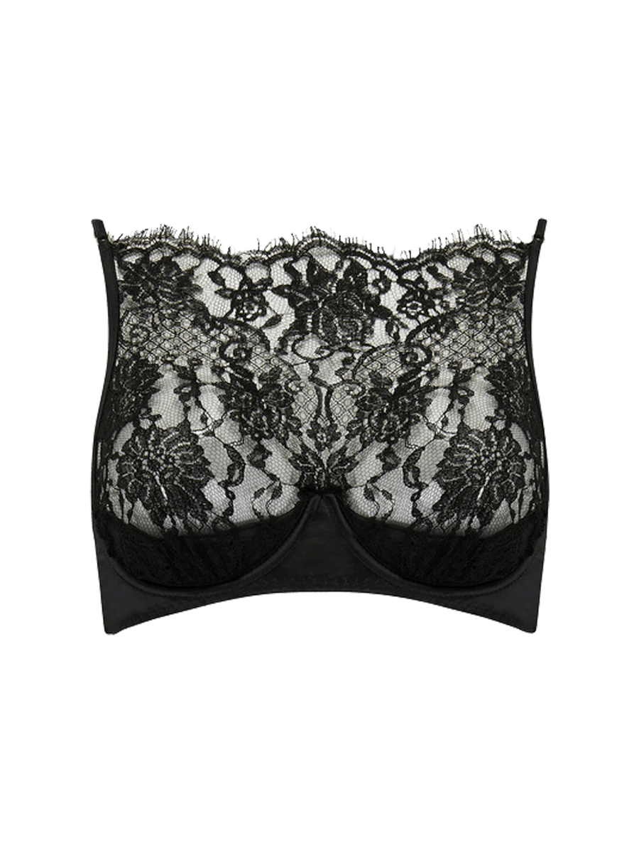 De Hera High Neck Balconette Bra brengt echt een nieuw niveau van iconisch naar uw lingeriegarderobe. Een brede band van gitzwarte zijde en een zijden kwartcup-sling omlijsten en liften de buste, waardoor een fenomenale vorm en een heerlijk ondersteunend gevoel ontstaat. Het dramatische paneel van Frans Leaver's kant glijdt over de borsten en creëert verleidelijke intriges, terwijl de wimperrand langs de halslijn een onnavolgbare elegantie geeft. Twee eenvoudige verstelbare zijden bandjes glijden langs de schouderbladen, met gouden componenten die de luxe van dit stuk benadrukken. Prachtig als een hint van een laag, iconisch op zichzelf, is de Hera High Neck Balconette Bra een majestueus lingeriestuk om te koesteren.