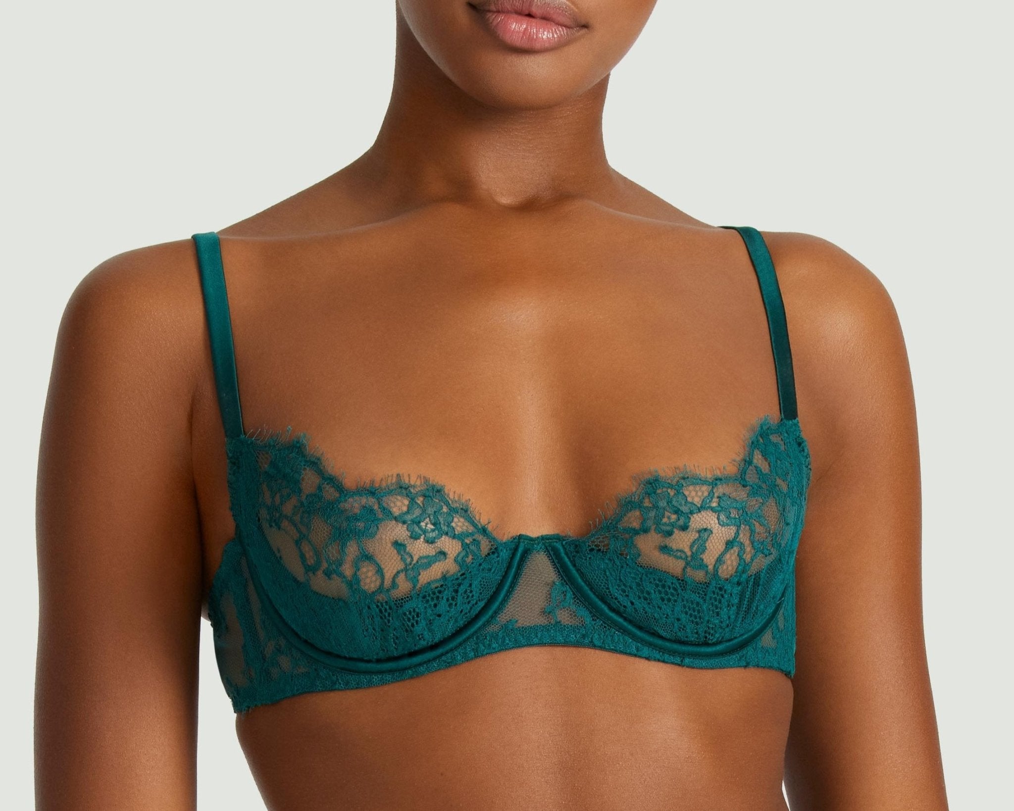 De Nilima Balcony Bra in een verbluffende blauwgroene kleur combineert elegantie met comfort. Het is voorzien van prachtig Frans Leavers-kant dat uw silhouet verbetert met ingewikkelde details. Gewatteerde zijden halve manen zorgen voor geweldige vorm en ondersteuning. De verstelbare zijden bandjes met gouden accenten voegen een luxe tintje toe. Perfect gecombineerd met de Nilima Brazilian Knicker, is dit item een onmisbaar kledingstuk. Bekijk de volledige collectie voor meer stijlvolle opties.