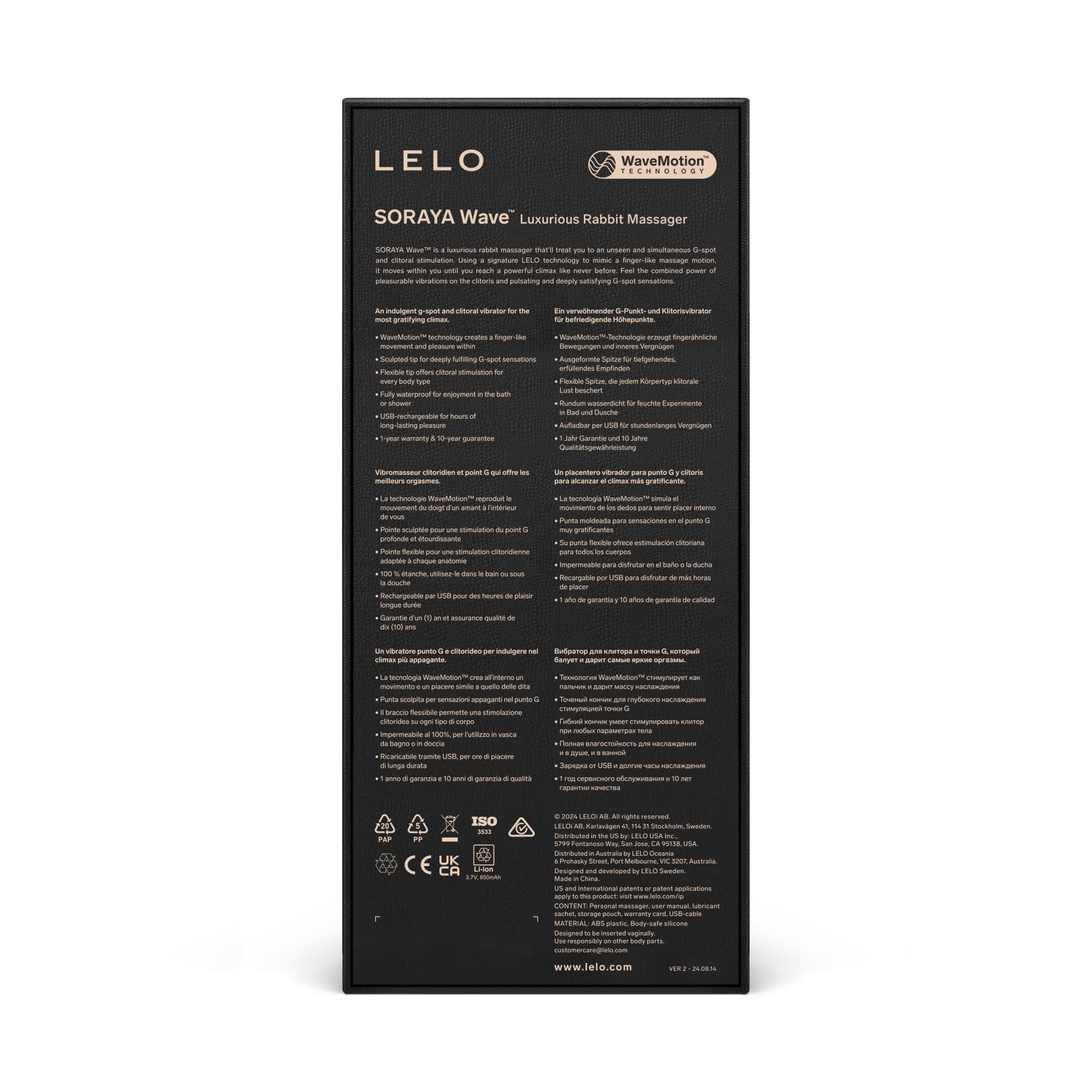 Plezier nummer 23 – Soraya Wave Black van LELO is een hoogwaardige konijnenvibrator die WaveMotion™-technologie combineert met krachtige clitorisstimulatie. Het flexibele ontwerp en de 12 vibratiestanden zorgen voor ongeëvenaarde, gecombineerde orgasmes in een elegante zwarte afwerking.