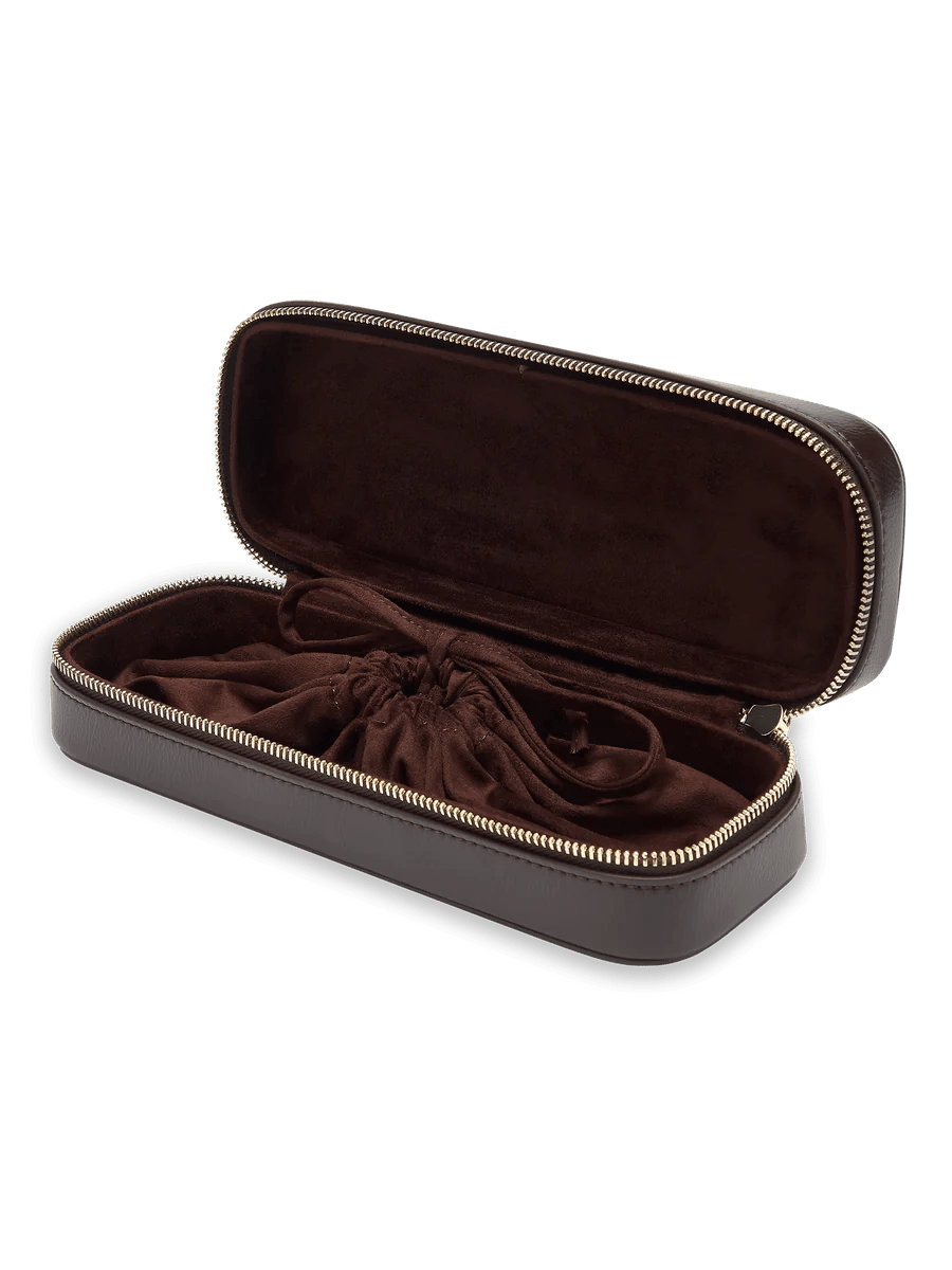 Inclusief: reisetui van veganistisch leer en binnenetui met trekkoord.