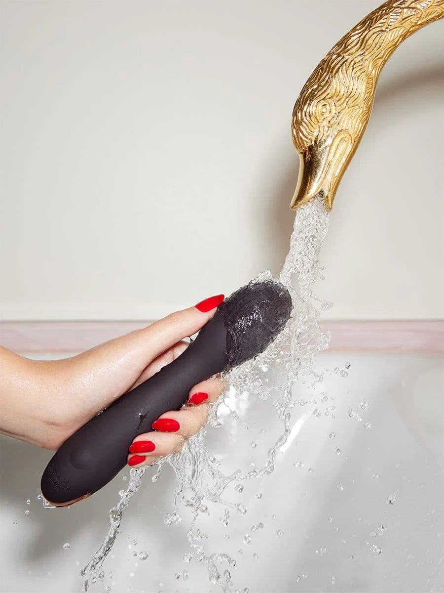 Vervul je diepste verlangens met Pleasure No. 6 – De Intieme Wand. Deze veelzijdige vibrator is ontworpen voor intiem genot en heeft een slanke schacht met een smalle taille en een afgeronde punt. Hij biedt tien vibratiestanden voor interne of clitorale stimulatie. Gemaakt van zijdezacht siliconen, zorgt hij voor een diepgaande en luxueuze ervaring. Volledig waterdicht en gemaakt van zacht, huidvriendelijk siliconen, nodigt hij uit tot ontdekking, waar je verlangen je ook heen leidt. Laad je wand op met de Coco de Mer oplader die bij elk speeltje uit de Pleasure Collection wordt meegeleverd en bewaar je nieuwe favoriet in het luxe reisetui van veganistisch leer met roségouden details en een binnenvakje met trekkoord. Verbeter je ervaring met Divine Glow glijmiddel en Coco de Mer speelgoedreiniger.