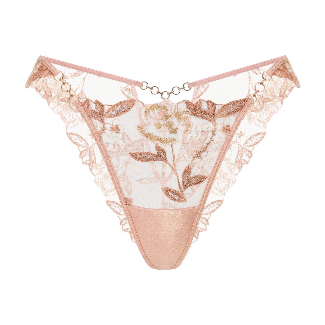 Stap in een wereld van allure met onze Braziliaanse snit die nieuwsgierigheid uitnodigt. Gemaakt van luxe geborduurd kant versierd met een bloemenpatroon, zorgt dit stuk voor comfort en elegantie. Het zachte katoenen kruisje verbetert de draagbaarheid, terwijl de gouden kettingaccessoires een speelse charme introduceren die boeit. Perfect voor degenen die van een beetje mysterie houden, deze Braziliaanse zal iedereen laten raden. Laat de ILLUSION uw stijl en zelfvertrouwen in elk moment verhogen.
