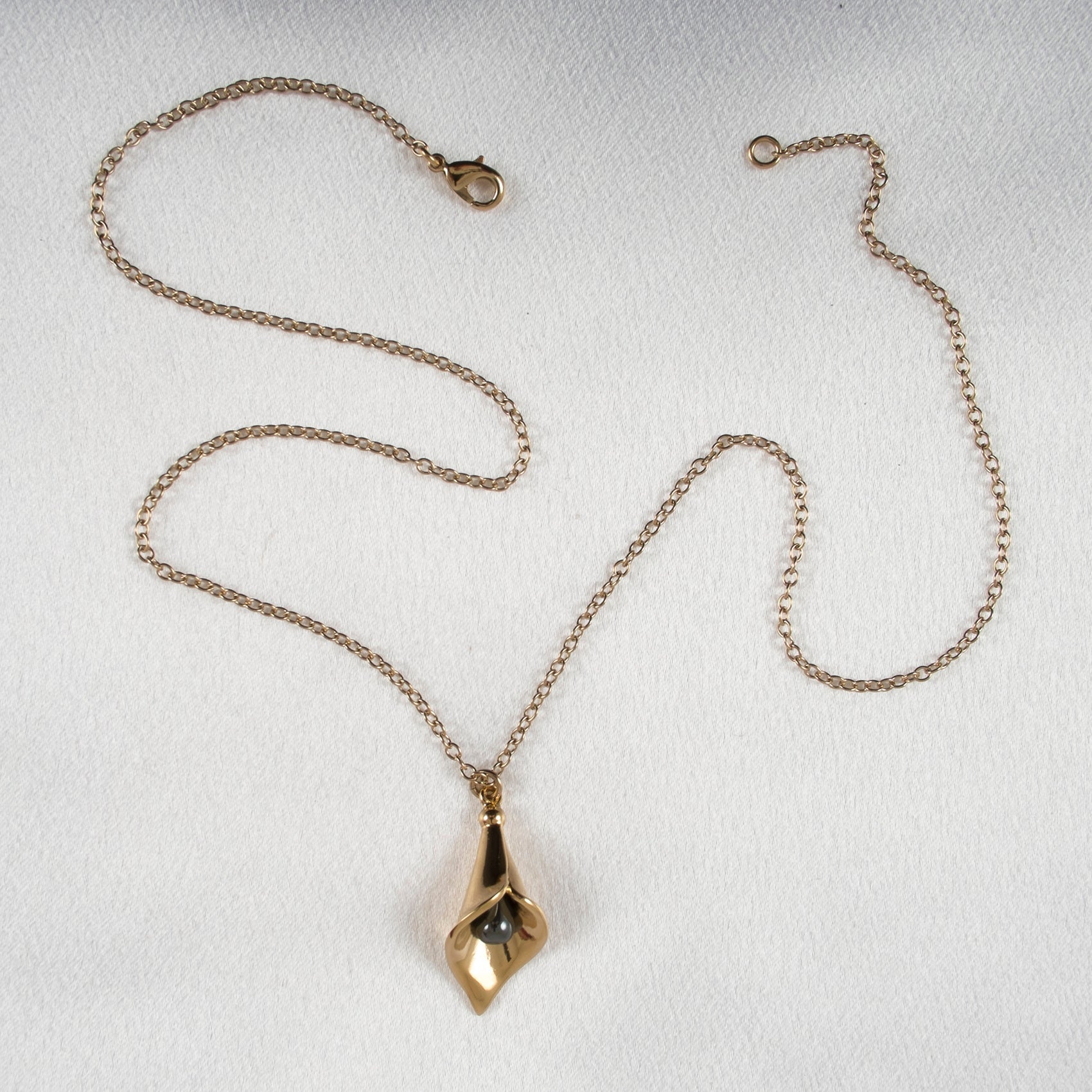 Geïnspireerd door de sensuele rondingen van de aronskelk, bloeit deze gouden hanger elegant en verleidelijk op aan uw hals. Het delicate ontwerp vangt de essentie van vrouwelijkheid en schittert bij elke beweging. Een sieraad dat de schoonheid van de natuur viert en tegelijkertijd verfijning uitstraalt; het is zowel een statement van verleiding als van verfijnde kunstzinnigheid.