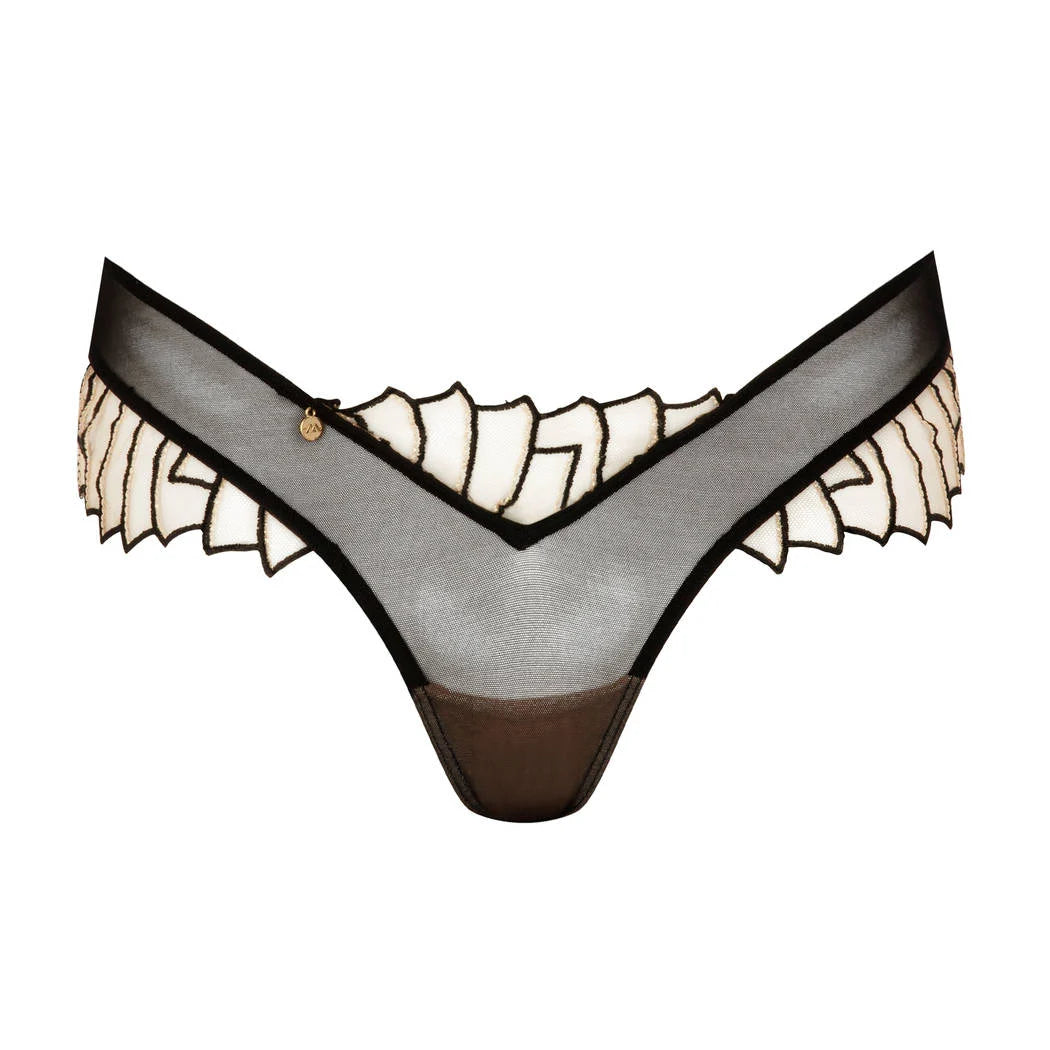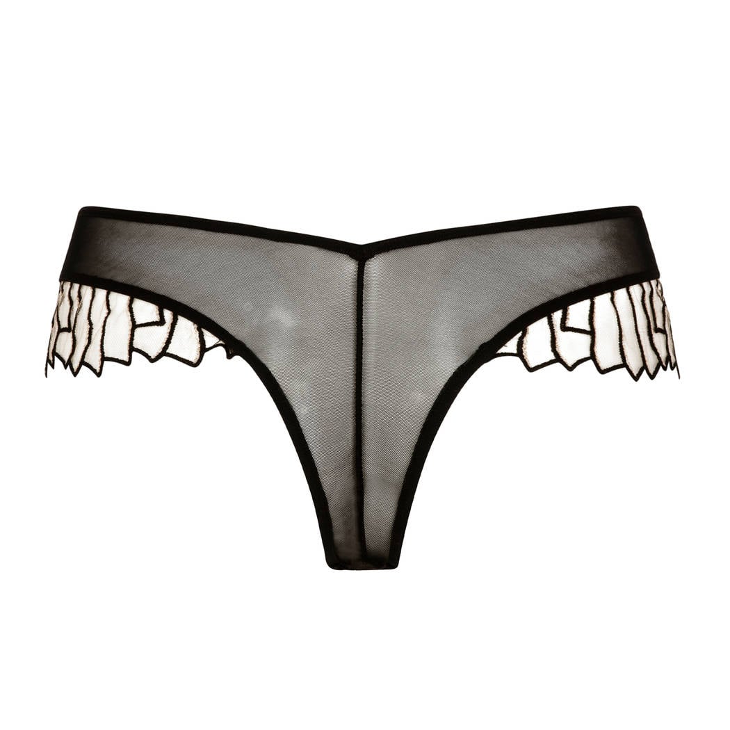 Cosmic Dream Hipster – Black seduces with sheer black tulle delicately embroidered in shimmering threads. Designed with a flattering hipster cut and refined detailing, this piece enhances your silhouette with daring transparency while offering Parisian elegance. Luxurious fabrics and exquisite craftsmanship make it a bold statement piece within the Cosmic Dream collection, perfect for nights of allure.